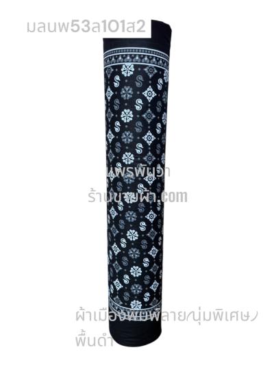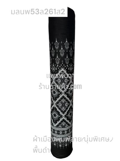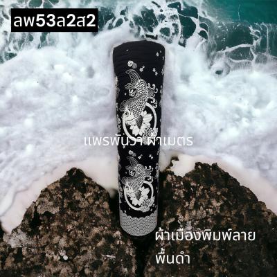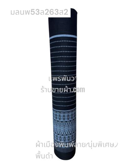 ผ้าหมักโคลน(พุ่งด้ายดำ)พิมพ์ลาย พื้นกรม ลายซิ่นลาว สีฟ้าสด