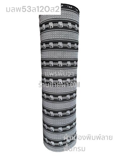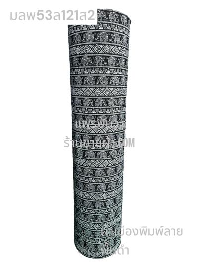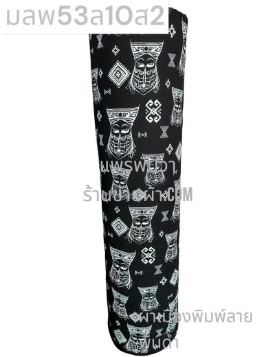 ผ้าหมักโคลน(พุ่งด้ายดำ)พิมพ์ลาย พื้นฟ้าสด ลายลายต้นสน(ลิซ่า) สีขาวนวล