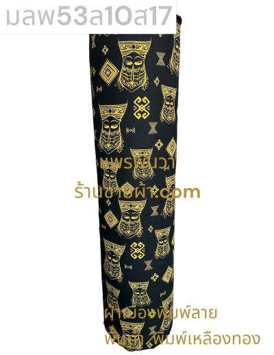 ผ้าหมักโคลน(พุ่งด้ายขาว)พิมพ์ลาย พื้นเหลืองทอง ลายลายมัดหมี่ดอกพิกุล สีขาวนวล