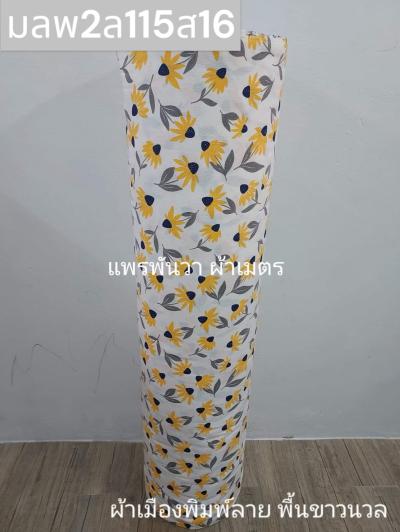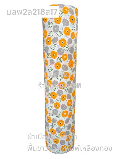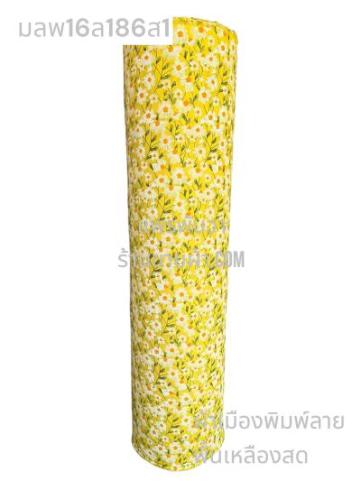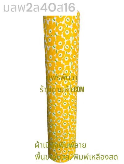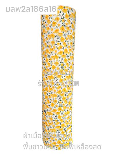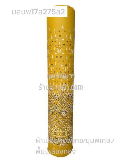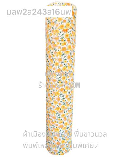 ผ้าเมืองพิมพ์ลาย(นุ่มพิเศษ)พื้นสี พื้นเหลืองทอง ลายลายประกายแสง สีขาวนวล