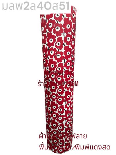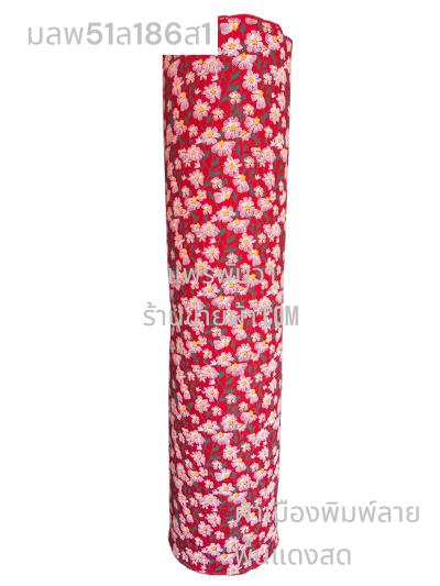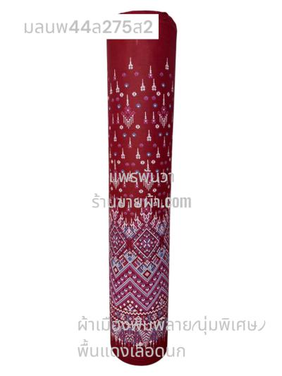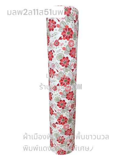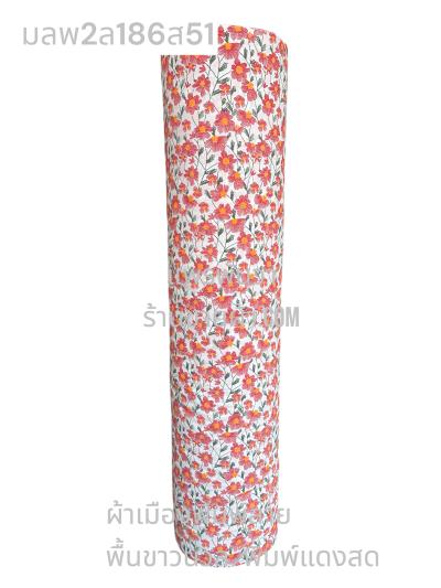 ผ้าเมืองพิมพ์ลาย(นุ่มพิเศษ)พื้นสี พื้นแดงเลือดนก ลายลายประกายแสง สีขาวนวล