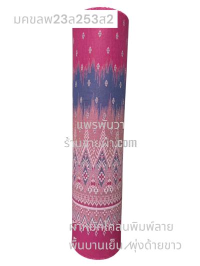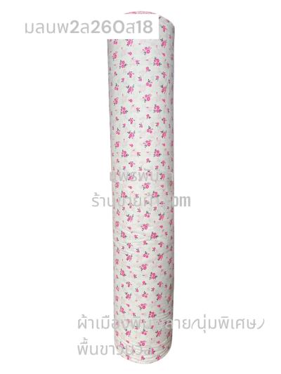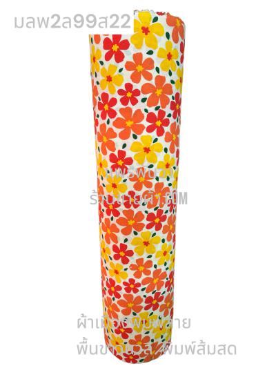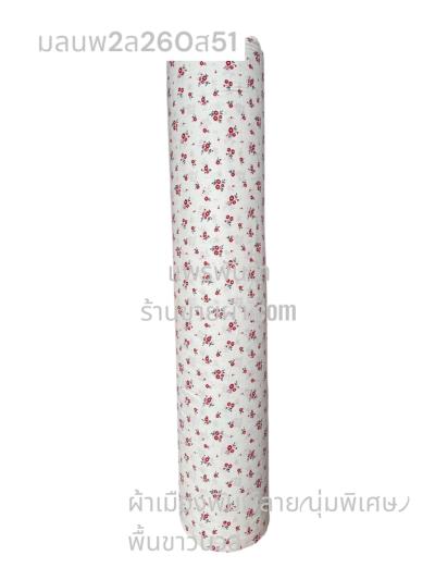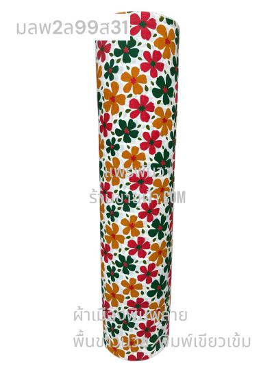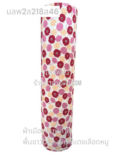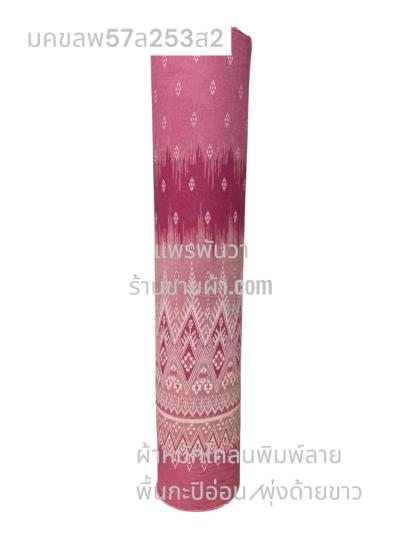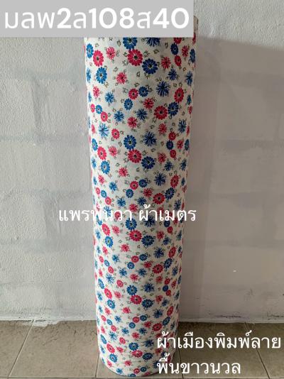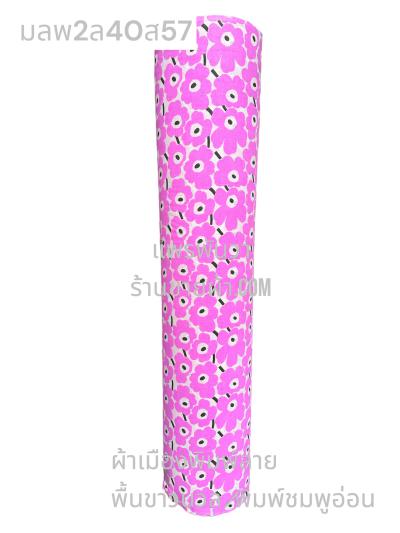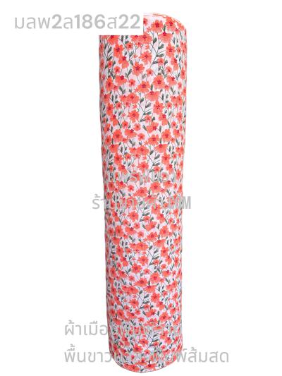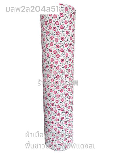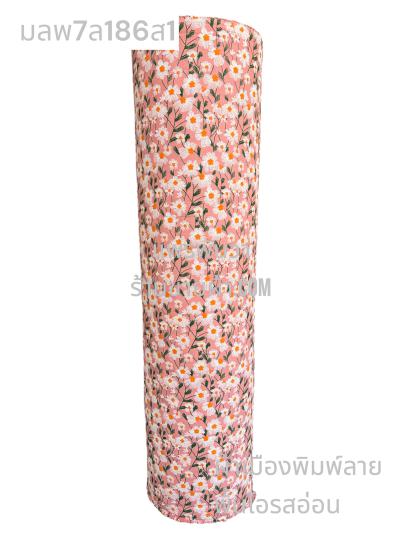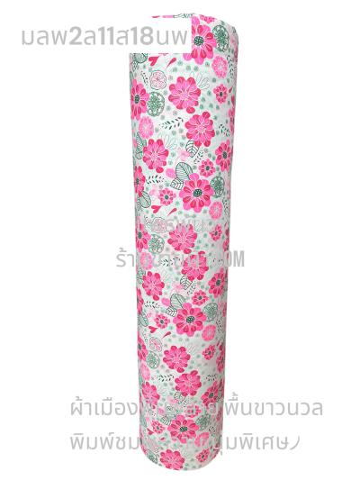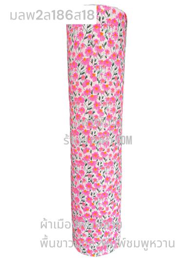 ผ้าเมืองพิมพ์ลาย(นุ่มพิเศษ)พื้นขาว พื้นขาวนวล ลายลายดอกพัด สีชมพูกะปิ
