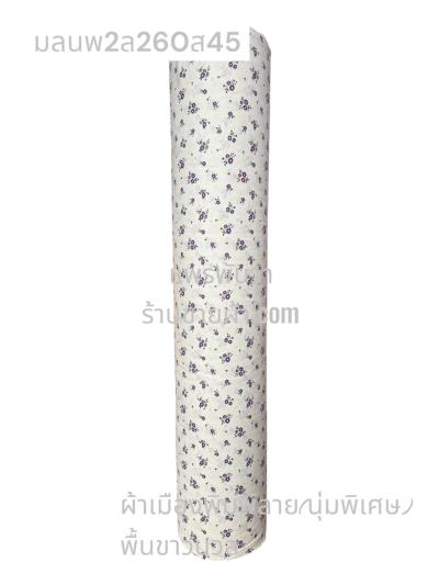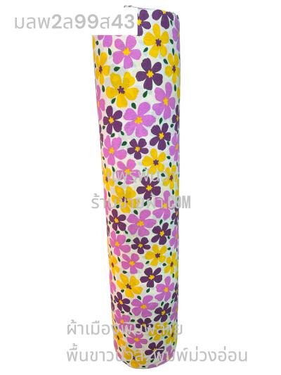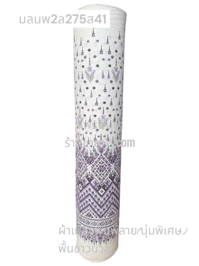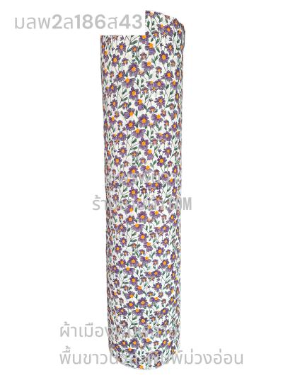 ผ้าเมืองพิมพ์ลาย(นุ่มพิเศษ)พื้นขาว พื้นขาวนวล ลายลายประกายแสง สีม่วงเผือก