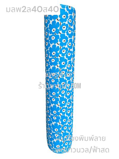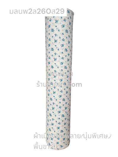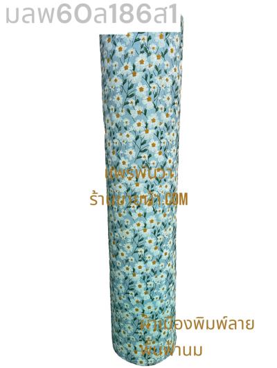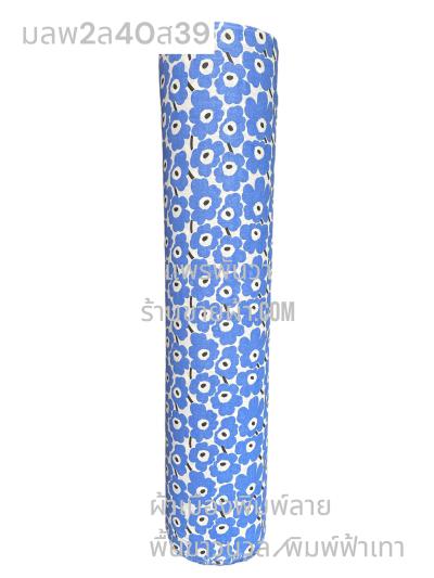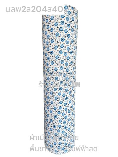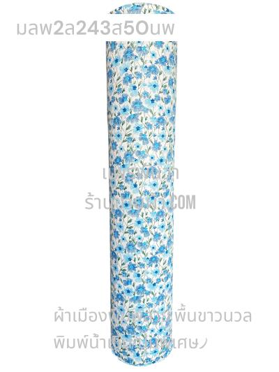 ผ้าเมืองพิมพ์ลาย-พื้นขาว พื้นขาวนวล ลายดอกยิปโซ สีฟ้าทะเล