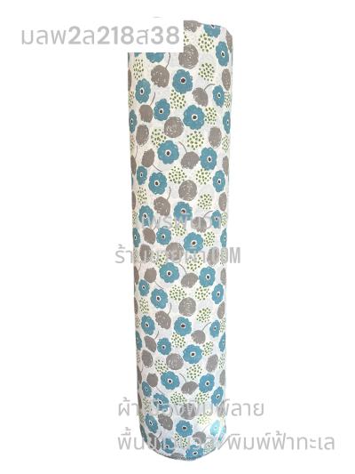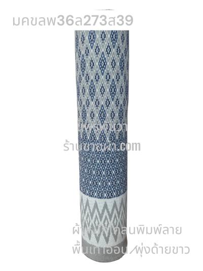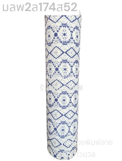 ผ้าหมักโคลน(พุ่งด้ายขาว)พิมพ์ลาย พื้นฟ้าทะเล ลายลายช่อต้นสน สีขาวนวล