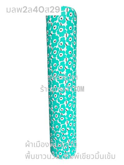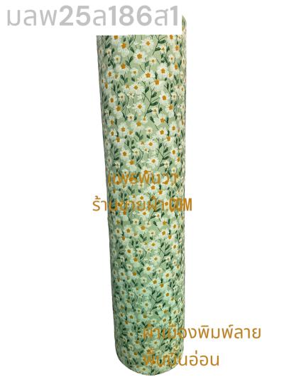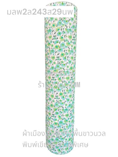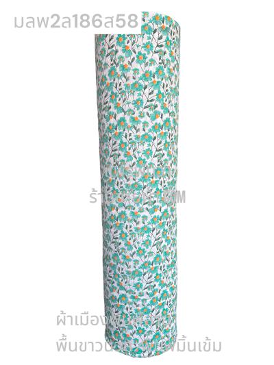 ผ้าเมืองพิมพ์ลาย(นุ่มพิเศษ)พื้นขาว พื้นขาวนวล ลายลายประกายแสง สีเขียวมิ้นเข้ม