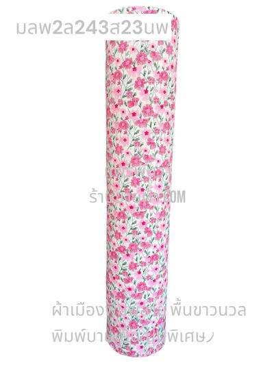 ผ้าเมืองพิมพ์ลาย-พื้นขาว พื้นขาวนวล ลายดอกยิปโซ สีชมพูหวาน