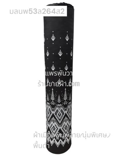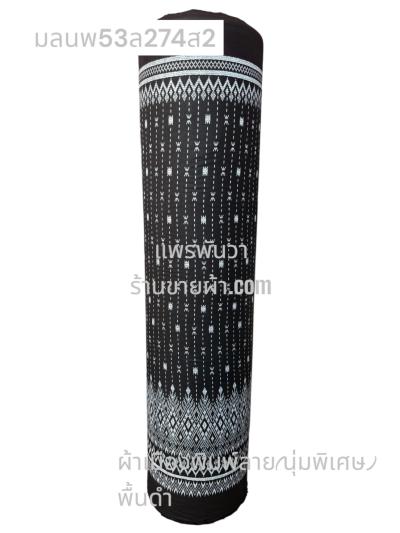 ผ้าเมืองพิมพ์ลาย(นุ่มพิเศษ)พื้นดำ พื้นดำ ลายลายน้ำไหลเชิงชิด สีขาวนวล
