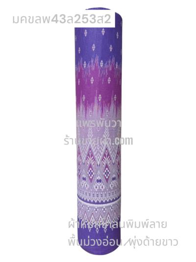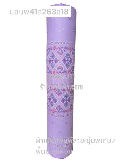 ผ้าเมืองพิมพ์ลาย(นุ่มพิเศษ)พื้นสี พื้นม่วงเผือก ลายเพชรชมพู สีชมพูหวาน