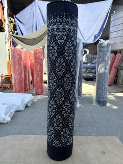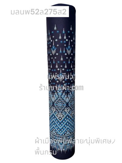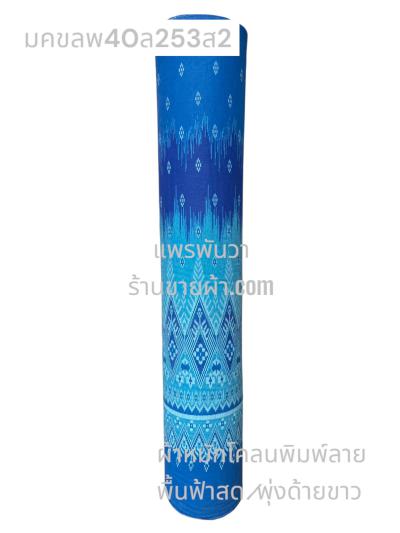 ผ้าหมักโคลน(พุ่งด้ายดำ)พิมพ์ลาย พื้นกรม ลายซิ่นลาว สีฟ้าสด