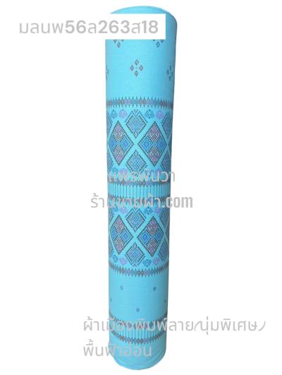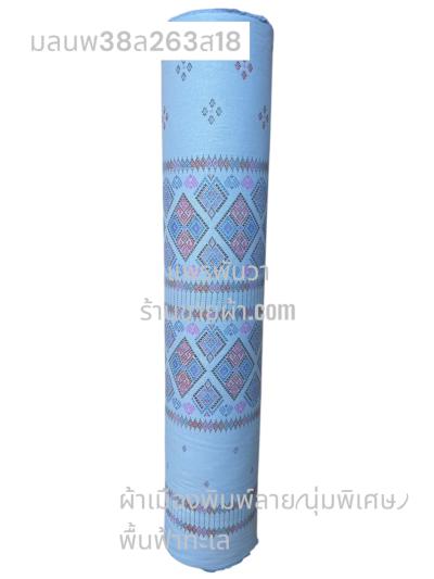 ผ้าเมืองพิมพ์ลาย(นุ่มพิเศษ)พื้นสี พื้นฟ้าทะเล ลายเพชรชมพู สีชมพูหวาน