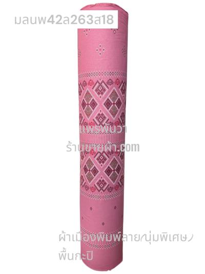 ผ้าเมืองพิมพ์ลาย(นุ่มพิเศษ)พื้นสี พื้นชมพูกะปิ ลายเพชรชมพู สีชมพูหวาน
