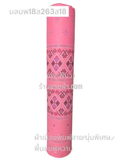 ผ้าเมืองพิมพ์ลาย(นุ่มพิเศษ)พื้นสี พื้นชมพูหวาน ลายเพชรชมพู สีชมพูหวาน