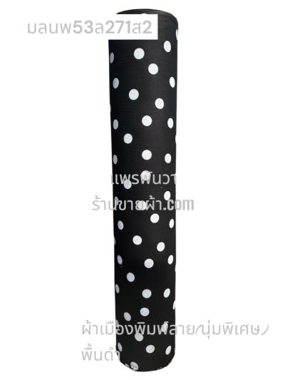 ผ้าเมืองพิมพ์ลาย(นุ่มพิเศษ)พื้นสี พื้นดำ ลายลายจุดใหญ่ สีขาวนวล
