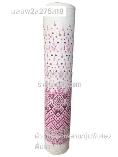 ผ้าเมืองพิมพ์ลาย(นุ่มพิเศษ)พื้นขาว พื้นขาวนวล ลายลายประกายแสง สีชมพูหวาน