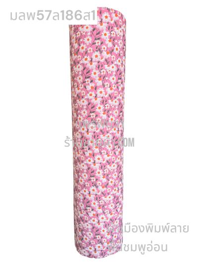 ผ้าเมืองพิมพ์ลาย(นุ่มพิเศษ)พื้นสี พื้นชมพูนุช ลายลายดอกปีบ สีขาวนวล
