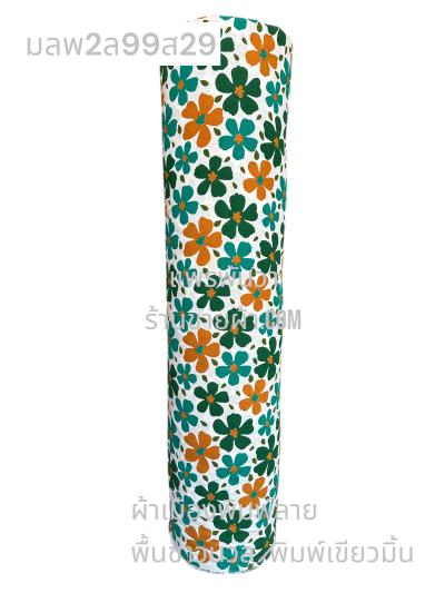 ผ้าลายดอกสงกรานต์ พื้นขาวนวล ลายดอกเดซี่ มินิมอล สีเขียวมิ้นเข้ม